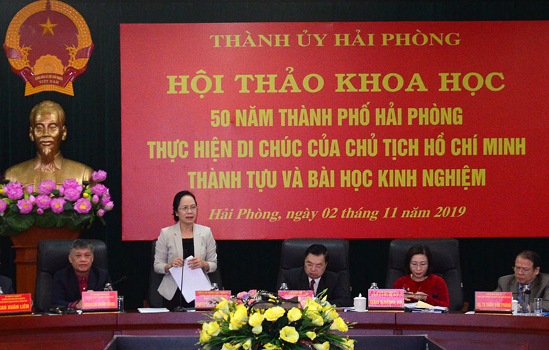 Kết luận Hội thảo, Phó Bí thư Thường trực Thành ủy Hải Phòng Nguyễn Thị Nghĩa nhấn mạnh, bám sát chủ đề hội thảo, bằng những luận cứ khoa học và thực tiễn, các ý kiến tham luận đề cập cụ thể, sâu sắc, khoa học về Di chúc của Chủ tịch Hồ Chí Minh, về thành tựu và những kinh nghiệm quý sau 50 năm thành phố Hải Phòng thực hiện Di chúc của Bác. Những thành tựu và bài học kinh nghiệm đúc kết từ thực tiễn 50 năm thực hiện Di chúc và những lời dạy của Chủ tịch Hồ Chí Minh tạo tiền đề quan trọng để Hải Phòng tiếp tục đổi mới và phát triển mạnh mẽ trong những năm tới.