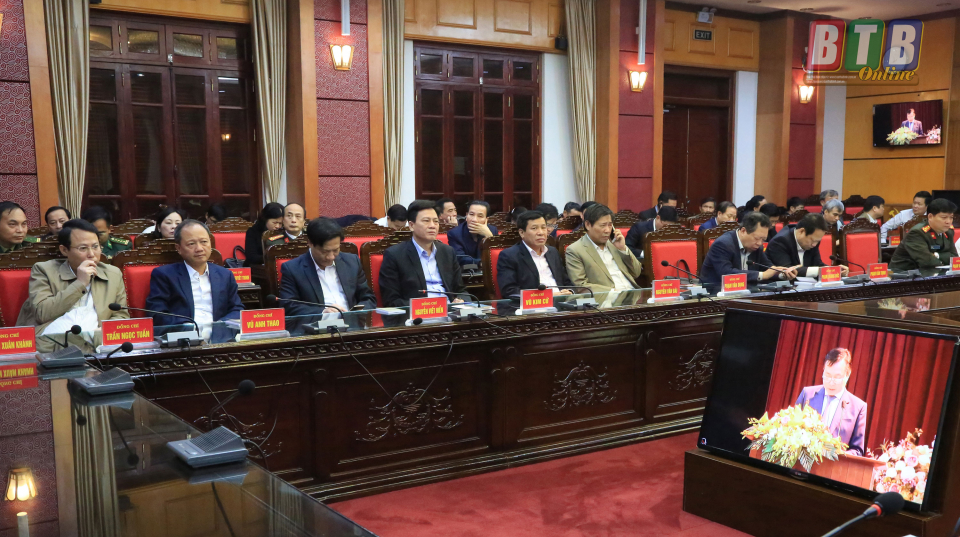 Dự hội nghị tại điểm cầu Thái Bình có các đồng chí: Ngô Đông Hải, Ủy viên dự khuyết Trung ương Đảng, Phó Bí thư thường trực Tỉnh ủy; Nguyễn Tiến Thành, Phó Bí thư Tỉnh ủy; các đồng chí Ủy viên Ban Thường vụ Tỉnh ủy, Ủy viên Ban Chấp hành Đảng bộ tỉnh; thủ trưởng các sở, ban, ngành, MTTQ, đoàn thể cấp tỉnh.