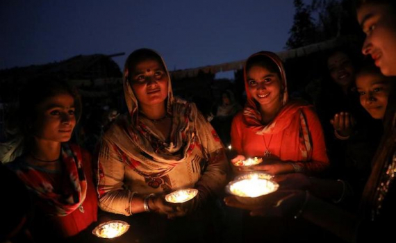 Những người tị nạn Hindu ở Pakistan thắp nến ăn mừng vào đêm trước khi lễ hội Diwali, lễ hội ánh sáng của người Hindu được tổ chức.