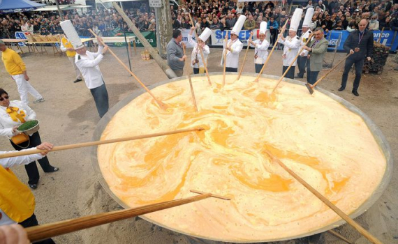 Kể từ năm 1973, người dân làng Haute-Garonne (Bessieres, Pháp) đã làm món trứng tráng khổng lồ với khoảng 15.000 quả trứng trong ngày lễ Phục sinh. Truyền thống được cho là bắt nguồn từ thời Napoléon khi ông và quân lính ở lại qua đêm gần đó. Ông đã thưởng thức món trứng tráng và yêu cầu người dân địa phương thu thập trứng trong làng nấu thành phiên bản khổng lồ cho đội quân của mình. Ảnh: Time Magazine.
