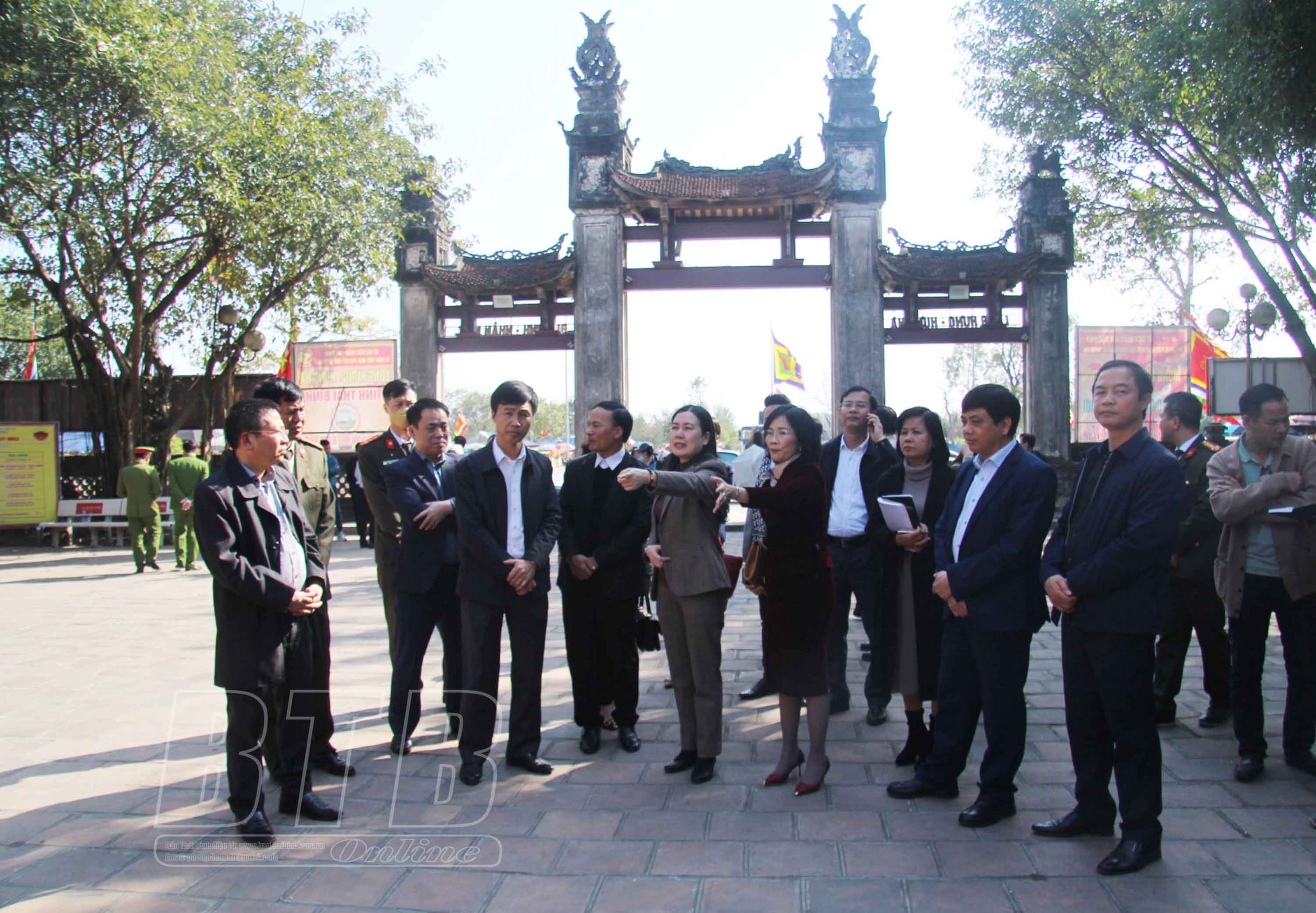 Đồng chí Trần Thị Bích Hằng, Tỉnh ủy viên, Phó Chủ tịch tỉnh kiểm tra công tác bảo đảm an ninh trật tự chuẩn bị cho lễ hội đền Trần.