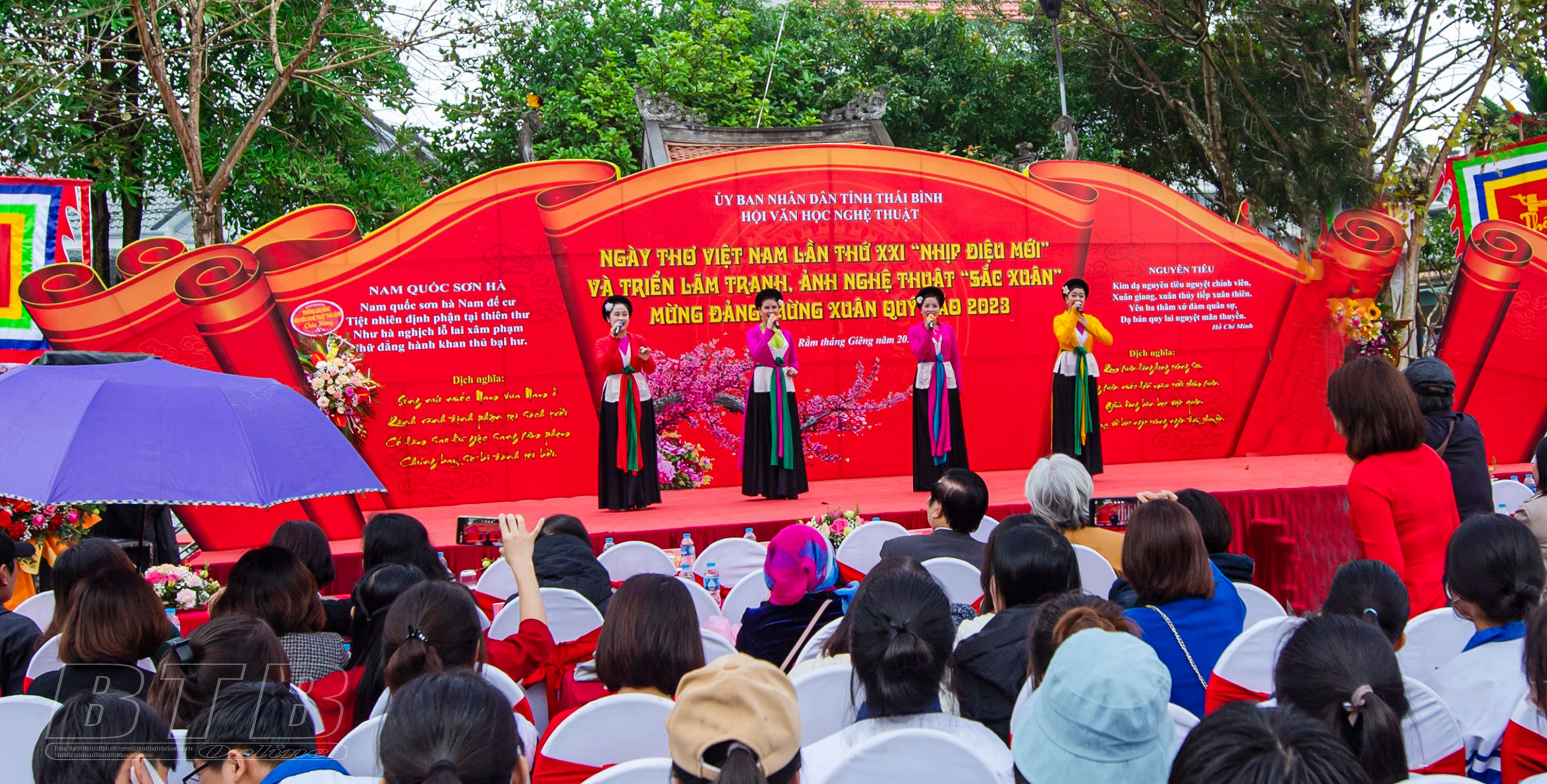 Bên cạnh hoạt động triển lãm tranh và ảnh nghệ thuật, năm nay, Hội Văn học Nghệ thuật Thái Bình đã lựa chọn đền Trần là nơi diễn ra ngày Thơ Việt Nam lần thứ XXI. Giữa không gian linh thiêng, bài thơ “Nam quốc sơn hà” với giọng đọc hào sảng của các nghệ sĩ vang lên khiến cho mỗi người nghe rưng rưng xúc động, tự hào về truyền thống lịch sử, thêm yêu và quyết tâm chung sức đồng lòng xây dựng, bảo vệ chủ quyền dân tộc. Trong không gian ngày Thơ còn có nhiều tác phẩm đặc sắc đến từ các nhà thơ Thái Bình. Mỗi tác giả, mỗi tác phẩm mang giọng điệu, phong cách nghệ thuật riêng đã góp vào vườn thơ Thái Bình sự đa sắc, đa thanh, làm nên sắc thái thơ của một vùng đồng bằng châu thổ sông Hồng đậm đà, ý vị.