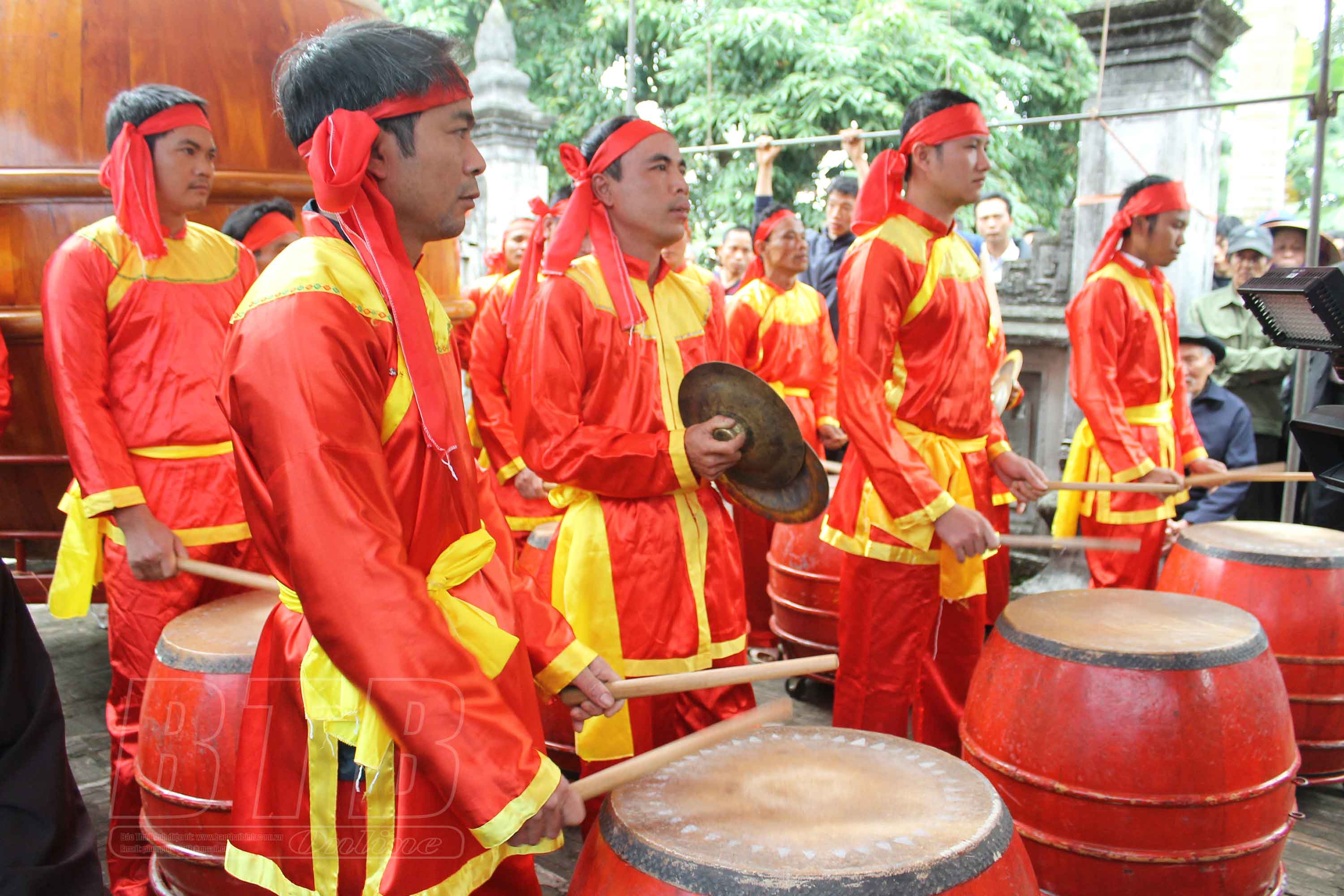 Biểu diễn trống hội tại lễ hội Vạn Xuân.