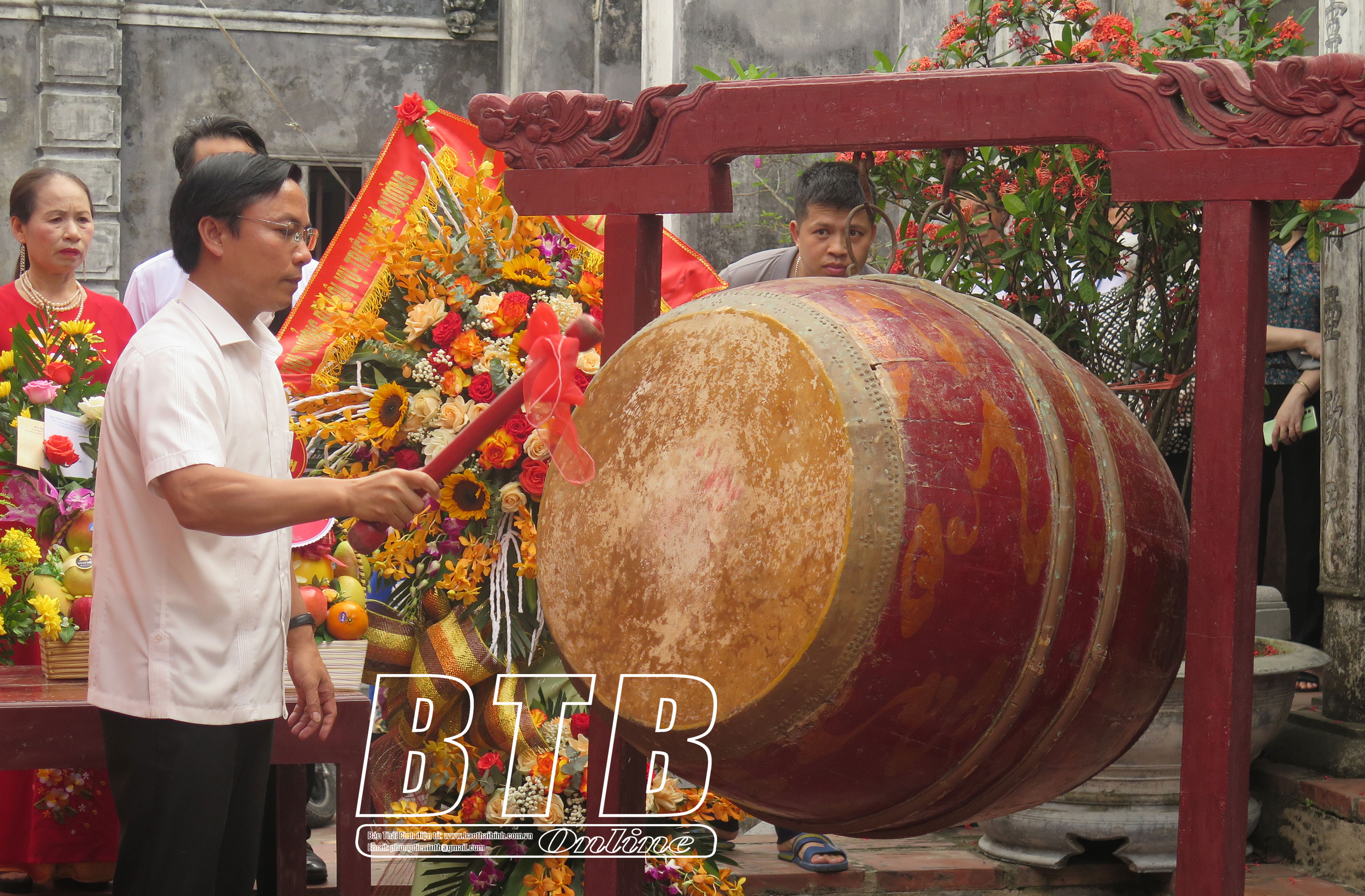 Lãnh đạo huyện Kiến Xương đánh trống khai hội.