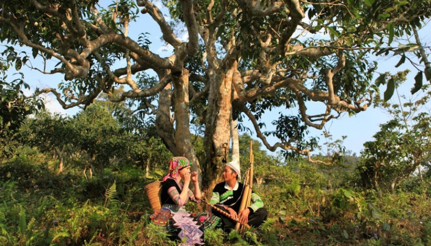 Dưới cây chè shan tuyết cổ thụ vùng cao Suối Giàng, huyện Văn Chấn.