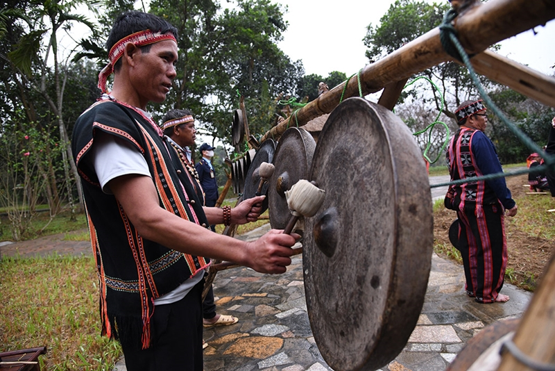 Những bài chiêng mời gọi các vị thần về dự buổi lễ thiêng liêng của bản làng được các thanh niên Bru - Vân Kiều tấu nên rộn ràng.