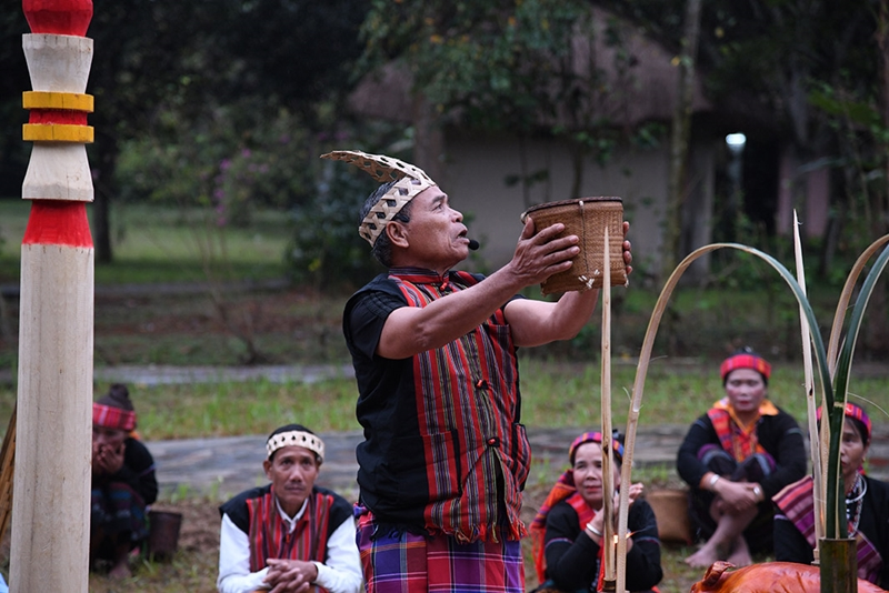 Già làng thực hiện nghi thức Lễ, xin mang những hạt giống để gieo trồng cho một vụ mùa mới, già làng cất lời khấn cầu thần linh phù hộ cho dân bản có sức khỏe tốt, cho hạt giống mọc lên cây lúa, cây ngô, cây đỗ được khỏe mạnh, xanh tốt, chim chóc, muông thú không phá hoại để có mùa màng bội thu người dân bản làng ấm no…