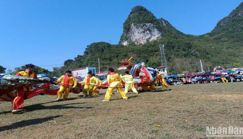 Múa rồng trong Lễ hội tranh đầu pháo thị trấn Quảng Uyên, huyện Quảng Hòa, tỉnh Cao Bằng.