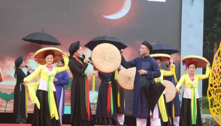 Biểu diễn chơi quan họ tại khai mạc lễ hội.