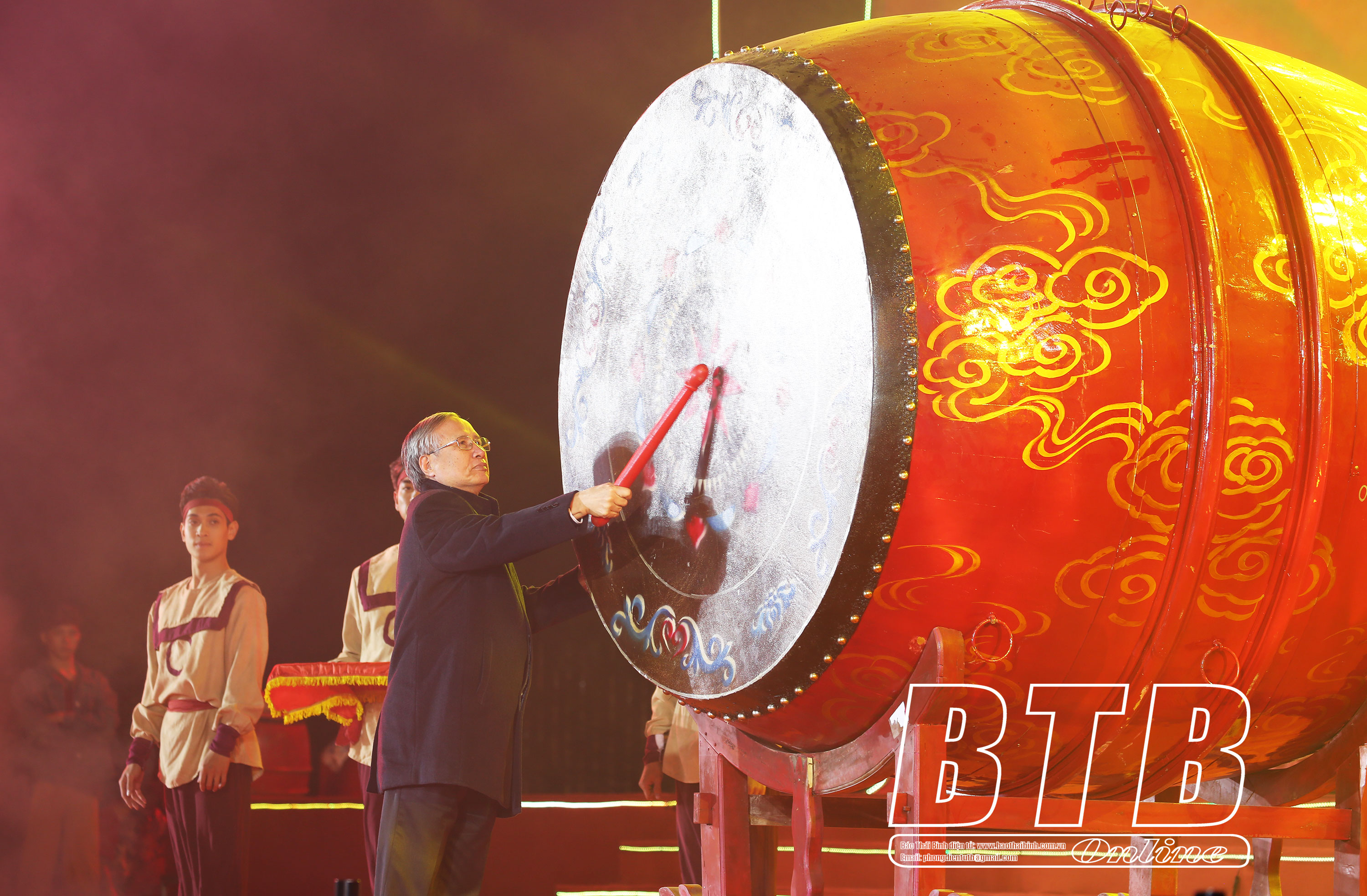 Tại lễ khai mạc, đồng chí Trần Quốc Vượng, nguyên Ủy viên Bộ Chính trị, nguyên Thường trực Ban Bí thư Trung ương Đảng đã khởi trống khai hội.