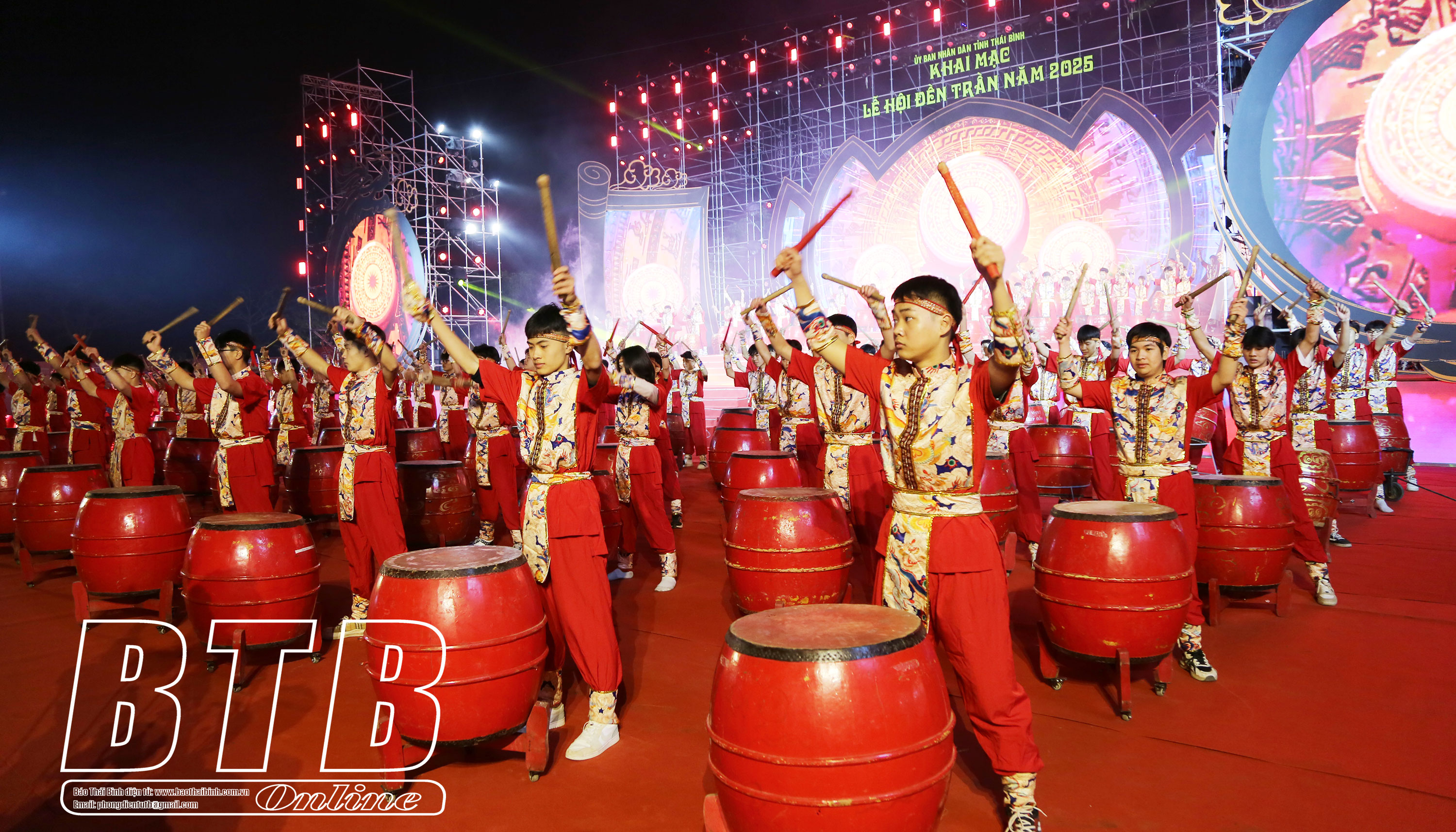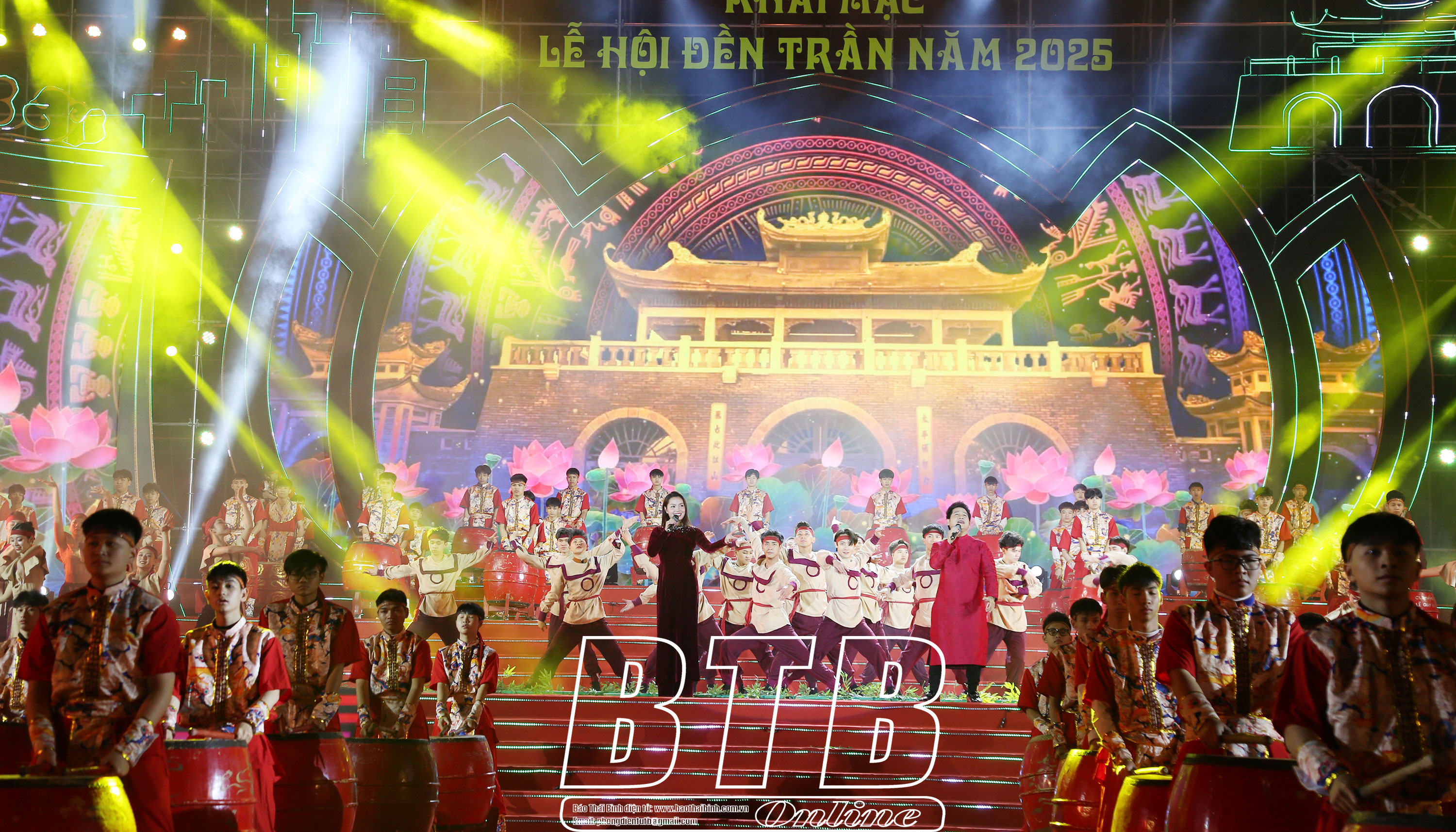Màn trống hội khai từ “Thái Bình - vàng son muôn thuở Trần triều”.