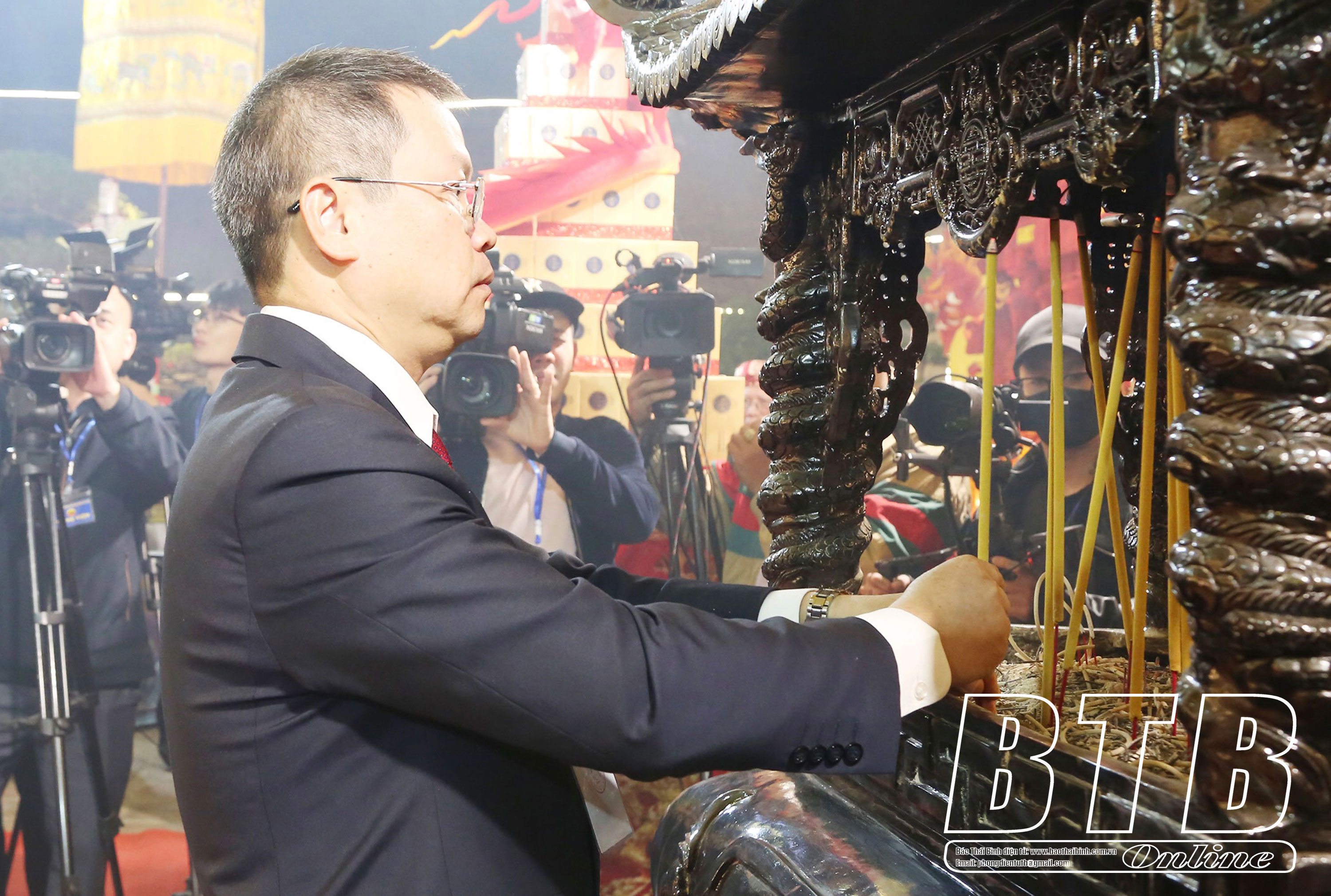 Đồng chí Ngô Đông Hải, Ủy viên Ban Chấp hành Trung ương Đảng, Phó Trưởng ban Tuyên giáo và Dân vận Trung ương dâng hương bái yết các vua Trần.