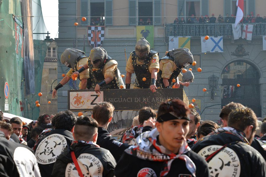 Bất chấp sự bùng nổ của virus corona tại nước này, Ivrea vẫn tổ chức lễ hội Carnaval trước mùa chay như thông lệ, từ ngày 20/2. Các trận chiến ném cam ban đầu dự kiến diễn ra trong 3 ngày từ 23/2-25/2 với hơn 800 tấn cam được chuẩn bị trước. Tuy nhiên, do lo ngại lây lan virus corona, chính quyền địa phương đưa ra quyết định hủy lễ hội ném cam vào ngày 24/2.