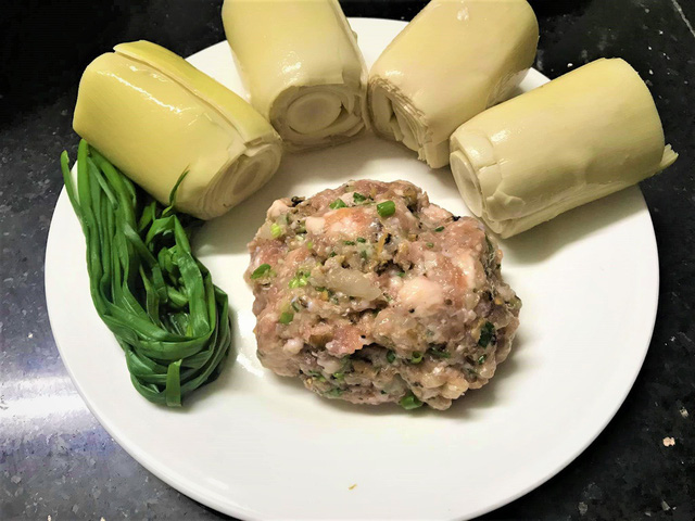 Với những lá măng bản to, bạn có thể làm món măng cuộn thịt hấp dẫn. Bạn chuẩn bị nhân gồm thịt heo xay, hành hoa, nấm, tiêu, gia vị. Để cố định măng, bạn dùng hành lá buộc gọn, sau đó hấp chín. Đây là cách chế biến sáng tạo bạn có thể tham khảo khi nấu măng.