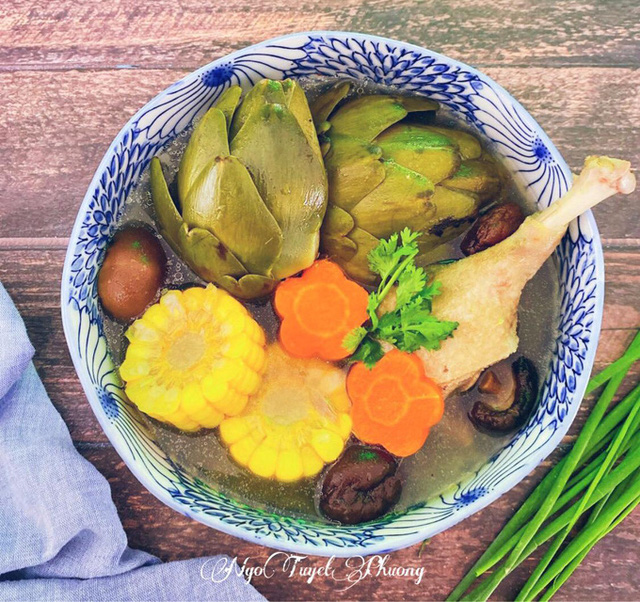Hoa atiso nấu canh với xương, sườn, gà, vịt... đều ngon, tuỳ khẩu vị, nấu với thịt vịt sẽ có vị ngọt đậm đà, thịt mềm.