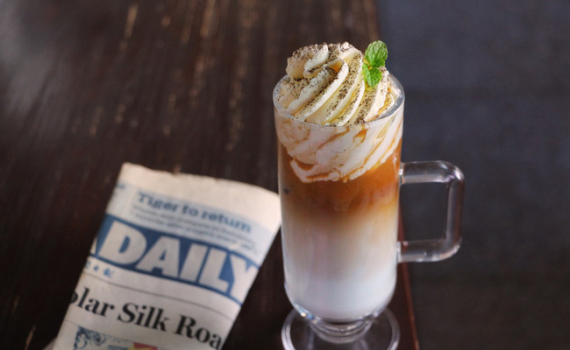 Sau đó từ từ đổ phần cà phê espresso đã nguội vào ly.