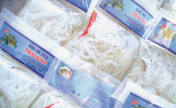 Ở hai huyện ven biển Tiền Hải, Thái Thụy có hàng chục cơ sở chế biến sứa nhưng nổi tiếng và được nhiều người biết đến là cơ sở sản xuất chế biến hải sản Trương Thị The ở xóm 9, xã Nam Thanh (Tiền Hải) với sản phẩm mang thương hiệu sứa ăn liền Thái Bình. Sở dĩ nhiều đại lý, cửa hàng, người tiêu dùng biết đến bởi đây là cơ sở chế biến sứa uy tín, chất lượng sản phẩm ổn định, vệ sinh an toàn thực phẩm và có thông tin chi tiết về nguồn gốc xuất xứ sản phẩm.