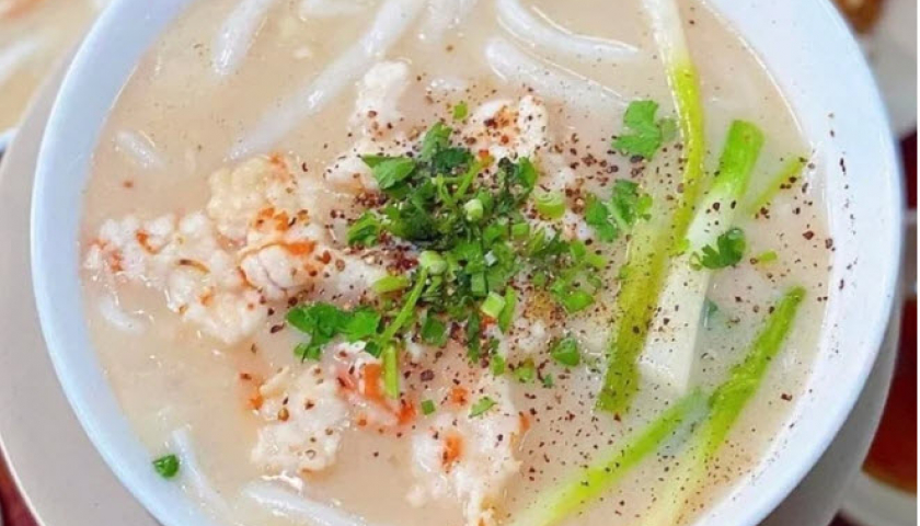 Bánh canh mặn nước cốt dừa gây thương nhớ với nước dùng sền sệt, thơm béo mùi nước dừa hòa cùng những sợi bột dai, mềm, mịn mang đến hương vị mới lạ, đầy hấp dẫn.