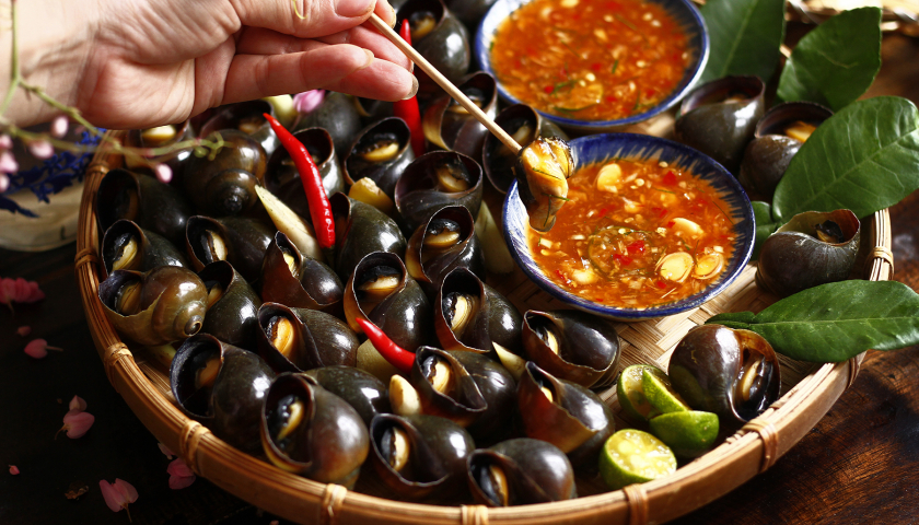 Pha nước chấm ốc: Bí quyết để nước chấm sánh có 2 cách: Cách một: Nấu nước mắm và đường cho hơi sánh lại, để nguội rồi mới cho lá chanh thái chỉ, sả thái lát mỏng cùng nước cốt quất vào. Cách này nước chấm ốc để được lâu. Cách 2: Cho đường, gừng, tỏi, ớt vào cối giã nhuyễn thành hỗn hợp sền sệt dậy mùi thơm, sau đó mới cho từ từ nước mắm, nước cốt quả quất vào khuấy đều, rồi thêm sả thái lát, lá chanh thái nhỏ vào. Nếu thích lên màu cam hấp dẫn hơn thì thêm tương ớt. Pha xong để 30 phút giúp nguyên liệu tiết ra tinh dầu giúp cho bát nước chấm dậy mùi thơm, lúc này dùng chấm ốc rất ngon. Ở Hải Phòng thường thêm chút rau mùi thái nhỏ tăng hương vị.