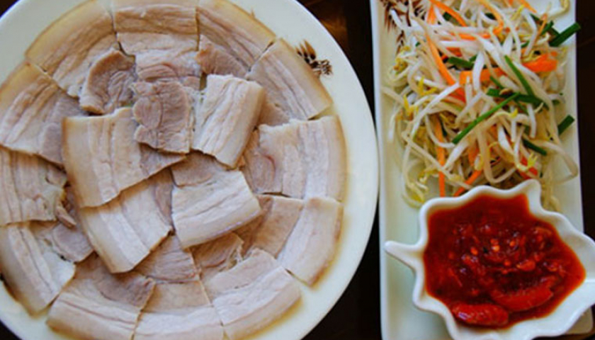 Đun nồi nước luộc thịt cùng hành, gừng và gia vị. Khi nước sôi, hạ lửa nhỏ và cho thịt ba chỉ vào luộc ở lửa liu riu. Luộc thịt bằng nước nóng giúp cho thớ thịt se lại, giữ được chất dinh dưỡng nên ngọt thịt. Luộc ở lửa nhỏ giúp thịt chín từ từ cả bên ngoài và bên trong, hơn nữa thịt không bị khô xác hay trắng mà khi chín tới vẫn giữ được màu phớt hồng nhẹ, đẹp như ở nhà hàng.