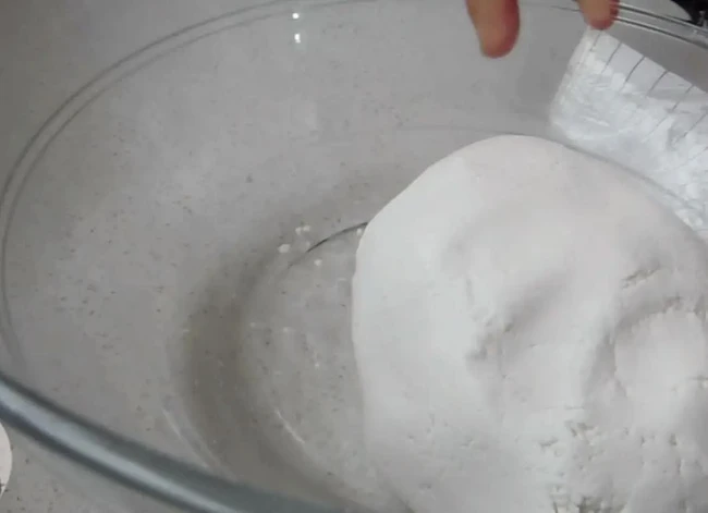 Bước 1: Bạn chia bột nếp làm 2 phần bằng nhau. Sau đó cho 150g bột nếp vào tô, rồi cho khoảng 300ml nước nóng vào, khuấy đều cho đến khi không còn bột khô lợn cợn. Để nguội rồi cho 150g bột còn lại vào nhào thành khối đồng nhất.