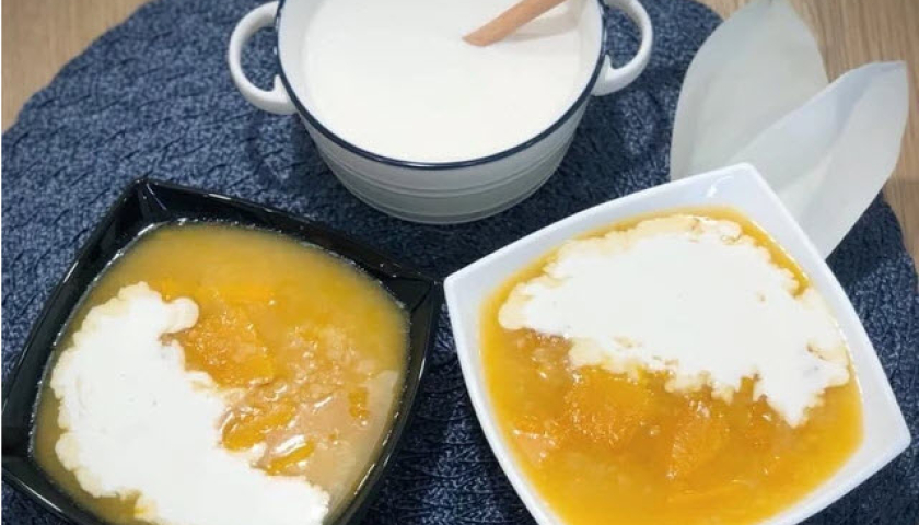 - Múc chè ra bát rưới cốt dừa lên và thưởng thức nhé. Chè bí đỏ đậu xanh ăn lúc nóng sẽ có vị thơm ngon hơn.