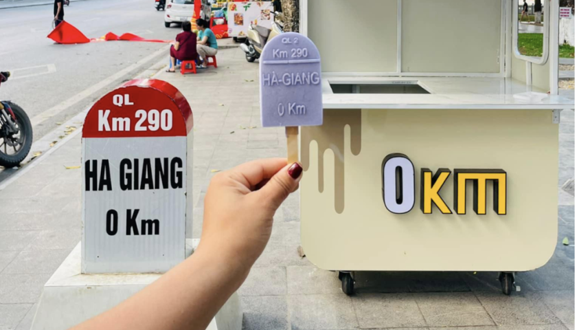 Gần đây, trên các trang mạng xã hội, hình ảnh về món kem cột mốc Hà Giang đã nhanh chóng trở thành "cơn sốt" đối với cộng đồng du lịch. Khác hẳn với những chiếc kem trong tiệm tạp hóa, que kem này được tạo hình khá độc lạ, xinh xắn. Điểm đặc biệt nhất là que kem đã mô phỏng cột mốc Km số 0 nổi tiếng của Hà Giang. Có thể thấy, từ hình dáng đến những con số trên que kem giống y như một cột mốc "bản mini size" lại có nhiều màu sắc sinh động.