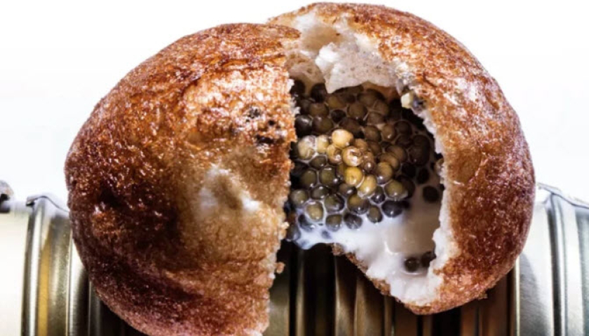 Bánh rán nhân trứng cá muối của nhà hàng Disfrutar. Ảnh: EURONEWS