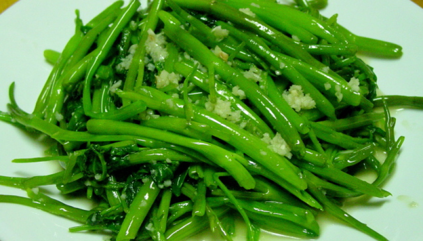 Xếp thứ hạng cao nhất với vị trí số 17, đó chính là món ăn thường xuyên xuất hiện trong các nhà hàng, ẩm thực bình dân - rau muống xào tỏi. Món ăn này còn được nhiều người Việt chế biến trong bữa cơm, đây cũng là món có cách nấu đơn giản và dễ dàng.