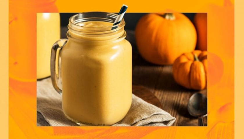 Cho bí ngô vào máy xay sinh tố, xay cho đến khi nhuyễn mịn. Bạn có thể thêm một chút sữa tươi vào lúc này để dễ xay hơn và tạo độ sánh mịn cho sinh tố. Tiếp theo, bạn cho nốt sữa tươi, sữa chua, mật ong và tinh chất vani vào xay cho đến khi được một hỗn hợp mịn màng.