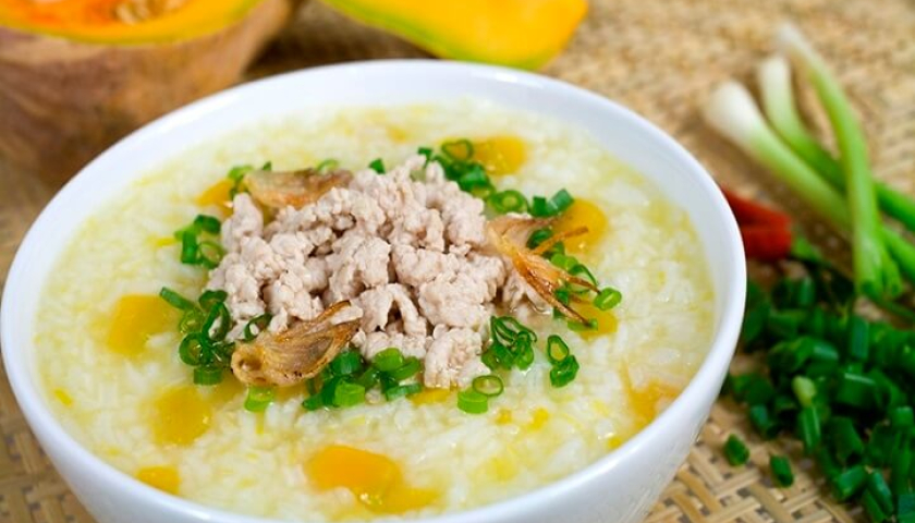 Bước 2: Vo gạo sạch sau đó cho vào nồi, thêm nước rồi bật bếp bắt đầu nấu cháo. Nấu cho đến khi gạo nở mềm, nhuyễn và nước chuyển sang màu trắng đục. Lúc này bạn đổ thịt đã ướp vào nồi rồi tiếp tục nấu thêm khoảng 5 phút. Bạn có thể dùng nồi cơm điện để nấu, thao tác cũng tương tự.