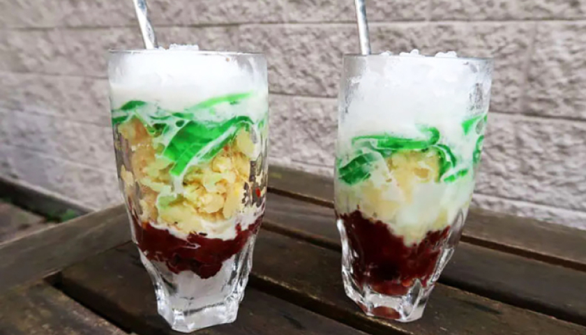Chè ba màu với lớp đậu đỏ, đậu xanh tán và thạch rau câu. Ảnh: Authentic food quest