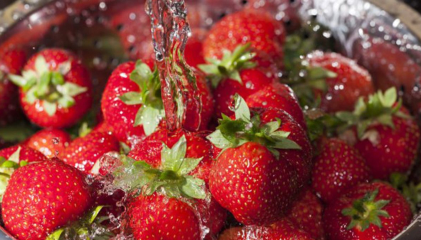 Sau đó, dâu tây được ngâm trong nước muối loãng trong vài phút để giữ độ giòn và loại bỏ vi khuẩn.