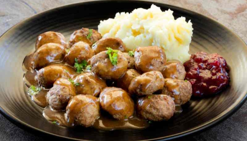 Nếu hỏi về món ăn "quốc dân" của Thụy Điển, nhiều người sẽ nghĩ ngay đến thịt viên nóng phủ sốt kem ăn cùng khoai tây nghiền bơ, đậu xanh và mứt nam việt quất chua ngọt. Dù là món ăn quanh năm, thịt viên vẫn là thứ không thể thiếu vào dịp Giáng sinh và thường có vị cay hơn thông thường. Ảnh: Campervan Sweden