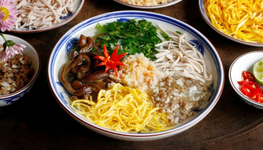 Thịt lươn mềm ngọt, trứng gà vàng ươm, ruốc sỏi giòn sần sật, giò lụa hồng nhạt, rau răm xanh tươi. Nước dùng ngọt thanh, thoảng hương cà cuống, mắm tôm bắt vị.