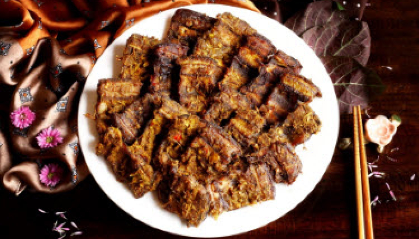 Gia vị tẩm ướp: Chọn riềng bánh tẻ, cạo rửa sạch, cắt lát, giã nghiêng chày cho nhỏ mịn. Sả đập dập, băm nhỏ. Nghệ già tươi rửa sạch, cạo vỏ và đem xay mịn với mẻ ngấu, cách này giúp nghệ giữ được màu tươi mới. Hành khô bóc vỏ, băm nhỏ. Các gia vị quen thuộc gồm mắm, muối hạt, mắm tôm, hạt tiêu, tương bần, có thể thêm chút đường (tùy chọn) để cân bằng vị chua từ mẻ. Nếu thích chút the cay thêm ớt bỏ hạt, băm nhỏ.