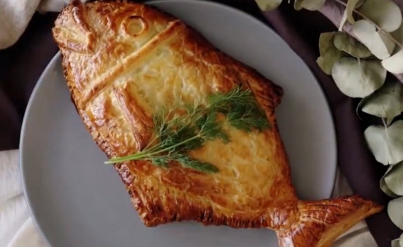 Bằng cách sử dụng 2 miếng bột ngàn lớp (puff pastry) cán sẵn để tạo hình, bạn có thể tự làm chiếc bánh nướng cá hồi với hình con cá và nhân cá hồi hấp ngon tuyệt bên trong.