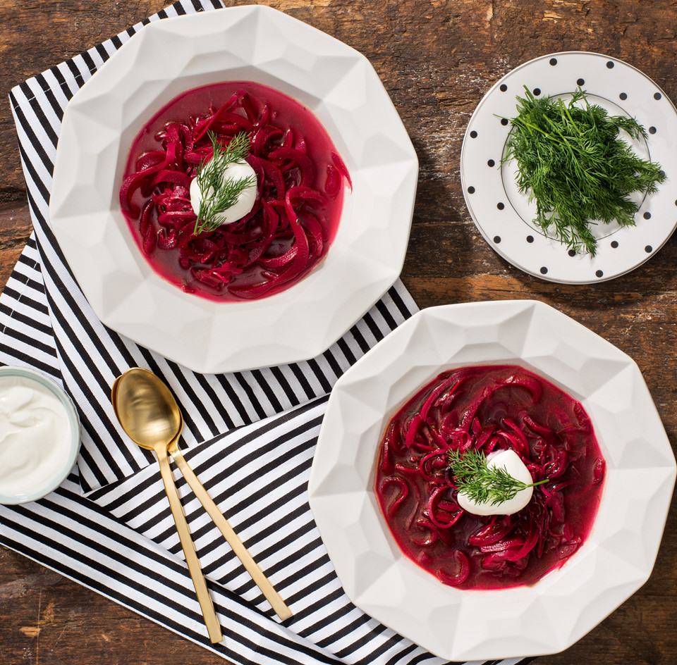 Borscht: Món ăn không chứa nhiều calo này được làm ra từ một số thành phần đơn giản và dễ tìm như thịt nạc, củ dền, khoai tây, cà rốt, hành tây... Ở một số nơi, nguyên liệu tạo nên món ăn này lên tới hơn 20 loại. Bánh mì thường được dùng kèm với món Borscht.
