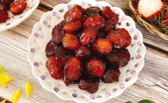 - Bạn có thể phơi nắng, khi phơi nhớ đậy bằng miếng vải mỏng tránh bụi và ruồi. Mứt chôm chôm có vị dẻo thơm chua nhẹ, mình có thể thêm ít muối ớt ăn ngon và lạ miệng.