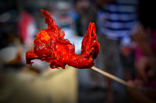 Đây là một món ăn nhẹ của người Philippines, được làm từ những con gà nhỏ, vừa nở khỏi trứng được một ngày. Hầu hết chúng là những con gà đực, bị loại khỏi nhà máy ấp trứng. Gà được làm sạch lông, xiên que để nướng hoặc chiên giòn. Món ăn được bán phổ biến ở thị trấn Coron, đảo Busuaga. Ảnh: Jennifermc Carthymons.