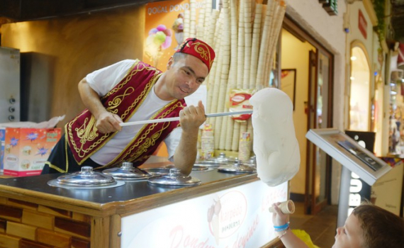 Những que kem Thổ Nhĩ Kỳ từ lâu được du khách yêu thích nhờ độ dẻo đặc biệt. Người bán kem địa phương còn thu hút khách bằng các trò ảo thuật độc đáo.