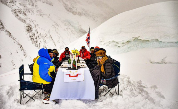 Đoàn thám hiểm thực hiện bữa tiệc tối cao nhất thế giới nhằm gây quỹ cho tổ chức từ thiện leo núi vì Cộng đồng Hành động Nepal.