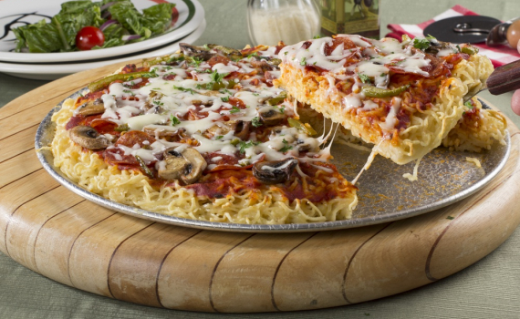 Pizza mì tôm: Sử dụng mì gói thay vì nhào bột sẽ giúp các bà nội trợ tích kiệm được thời gian chế biến. Để có phần đế hoàn hảo nhất, bạn cần trụng sơ với nước sôi, ép và nén chặt mì ngay trên chảo. Thêm các nguyên liệu cơ bản cần có như phô mai, thịt băm, sốt cà chua... là bước cuối cùng để hoàn thiện món ăn.