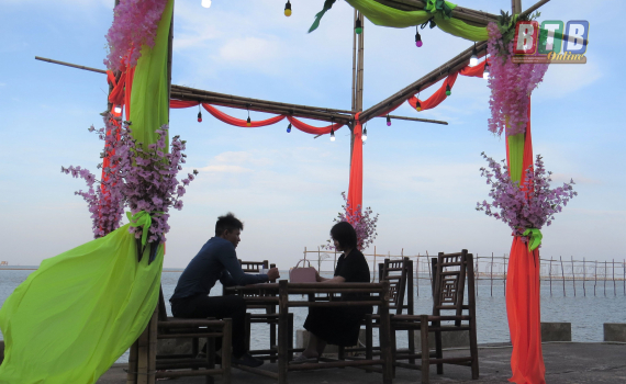 Năm nay, khi đến Cồn Đen du khách được tận hưởng những bữa ăn ngay bên bờ biển.