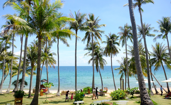 Đảo ngọc Phú Quốc sở hữu những bờ cát trắng dài, làn nước xanh trong thu hút du khách trong và ngoài nước. Lặn ngắm san hô, lặn bình khí là những môn thể thao được ưa chuộng nhất ở đây, bên cạnh lướt ván buồm, lướt ván với tàu cao tốc hay câu mực... Ở Phú Quốc du khách không thể bỏ qua khu chợ Dương Đông với các hải sản độc đáo, tươi ngon.