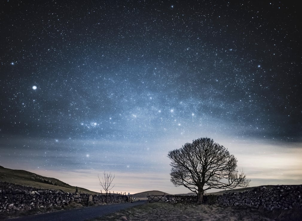 Việc chụp được sao và dải thiên hà phụ thuộc lớn vào ánh sáng. Ở những nơi bị ô nhiễm ánh sáng nặng như thành phố lớn, bạn sẽ không thể thấy được. Trong ảnh, cây cô đơn dưới bầu trời đầy sao ở làng Malham, Bắc Yorkshire.