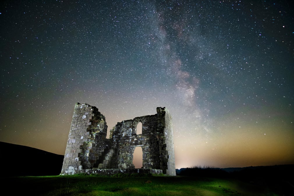 Dải thiên hà vắt ngang qua khu vực tháp Skelton. Đây là phế tích cổ của công trình được xây dựng từ khoảng 200 năm trước.