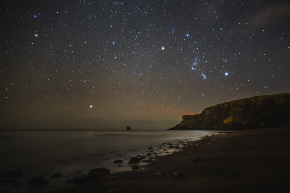 Không tồn tại một điểm ngắm sao hay thiên hà hoàn hảo nhất. Lý do bởi vị trí các chòm sao khác nhau vào từng thời điểm trong năm. Tuy nhiên, theo nhiều đánh giá, các khu bảo tồn bầu trời đêm ở châu Phi là những điểm tuyệt vời hơn cả. Trong ảnh, chòm sao Lạp Hộ lấp lánh trên vịnh Saltwick.