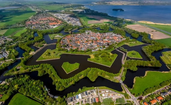 Willemstad, cũng ở vùng North Brabant, là một ví dụ điển hình khác của thành phố ngôi sao tại Hà Lan. Người ta lý giải 7 pháo đài của nó đại diện cho 7 tỉnh hợp nhất để giải phóng Hà Lan khỏi sự cai trị của Tây Ban Nha vào thế kỷ 16, hình thành một nhà nước độc lập. Ảnh: Zuiderwaterlinie