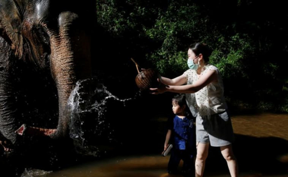 Khách du lịch tại địa điểm du lịch nổi tiếng Trại voi Mae Sa, ở Chiang Mai, Thái Lan.